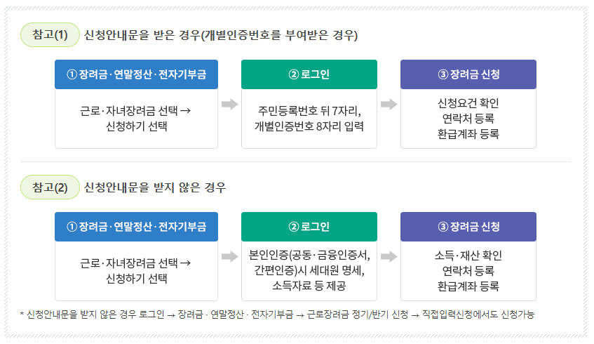 - 홈택스 웹사이트: 접속 후 로그인 → 근로장려금 신청 메뉴 → 입력 항목 확인 후 제출